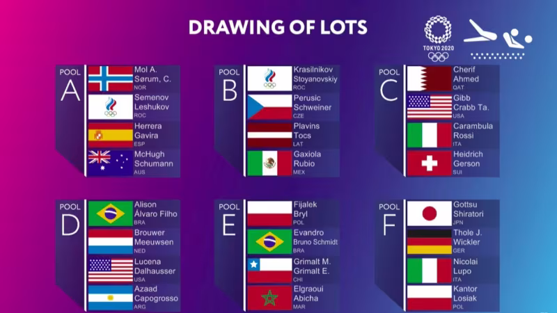 24 Frauen- und Männer-Teams gehen in Tokio an den Start und kämpfen im "Shiokaze Park" in der Tokyo Bay Zone um Gold, Silber und Bronze. Nach der offiziellen Nominierung durch den Deutschen Olympischen Sportbund (DOSB) wurden nun die Gruppengegner der deutschen Duos Karla Borger/Julia Sude (DJK TuSA 06 Düsseldorf), Margareta Kozuch/Laura Ludwig (Hamburger SV) und Julius Thole/Clemens Wickler (ETV Hamburg) gesucht. In Moskau wurden sechs Gruppen á 4 Teams pro Geschlecht ausgelost.