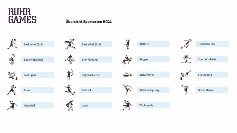 Es ist die gute Nachricht, auf die die Athletinnen und Athleten seit Monaten warten: Die internationalen und nationalen Leistungssport-Wettkämpfe der RUHR GAMES werden – versehen mit einem strengen Hygienekonzept – stattfinden. Mit der ersten jemals ausgetragenen Europameisterschaft im BMX Flatland, den Deutschen Meisterschaften im Beachvolleyball, Klettern (Speed und Bouldern) und in Sportakrobatik sowie internationalen Turnieren u.a. im Handball und Basketball ist die digitale Sonderedition der RUHR GAMES das wichtigste Wettkampf-Event für Jugendsport seit über einem Jahr. In 45 Disziplinen werden 219 Entscheidungen um Platz 1 getroffen und insgesamt 334 Siegerinnen und Sieger gekürt.