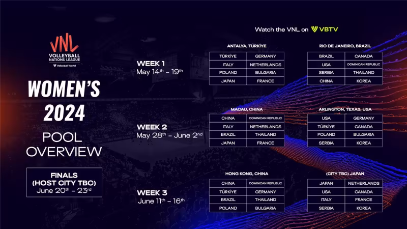 Nach der besten VNL-Leistung der deutschen Frauen 2023 und dem erstmaligen Finaleinzug, entscheidet 2024 die VNL-Performance, ob die deutschen Frauen noch ein Ticket für die Olympischen Spiele lösen können. Es wird das alles entscheidende Turnier 2024 auf der Road to Paris 2024 für die deutsche Frauen-Nationalmannschaft.