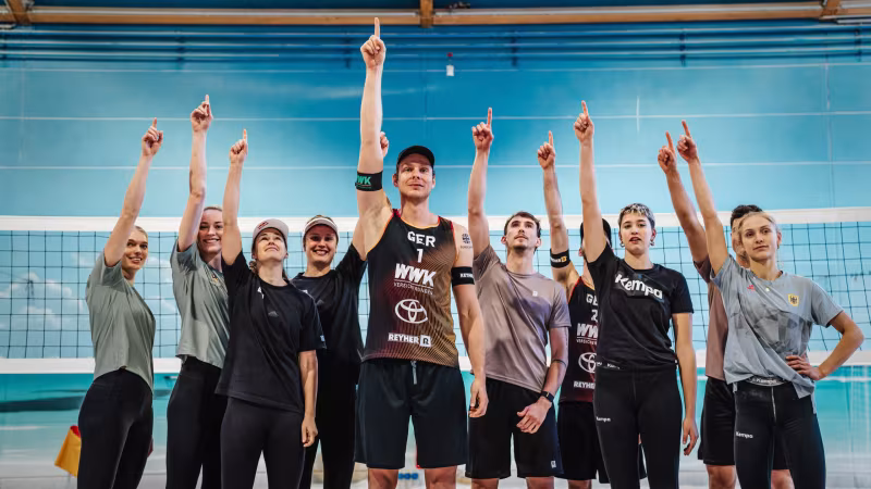 Bei den Männern gehen Nils Ehlers und Clemens Wickler in ihr viertes gemeinsames Jahr – und das erstmals als Weltranglisten-Erste. Nach der erfolgreichen Saison mit Olympia- und EM-Silber richtet sich der Fokus nun auf die neue Saison. „Wir haben ordentlich im Kraftraum geschuftet und im Balltraining ein paar Spielzüge verfeinert“, sagt Nils Ehlers und verrät: „Wir werden uns ein bisschen dem modernen Spielstil anpassen.“ Nach der langen Trainingsphase ist die Vorfreude bei seinem Partner Clemens Wickler auf die ersten Turniere groß: „Der Winter ist anstrengende Arbeit, die Wettkämpfe machen deutlich mehr Spaß und sind quasi eine Belohnung.“ Los geht es für das Duo ebenfalls mit dem Elite16 in Quintana Roo, Mexiko (26.-30. März). Das erste Highlight in diesem Jahr wird dann die Heim-EM in Düsseldorf. „Da haben wir noch eine Rechnung offen“, sagt Nils Ehlers. Zwar wurden sie bei der EM im vergangenen Jahr Vizeeuropameister, doch bei der letzten Heim-EM 2022 in München wurden sie nur Fünfter. „Da sind wir chancenlos im Viertelfinale ausgeschieden“, erinnert sich Clemens Wickler und gibt die Marschroute für dieses Jahr vor: „Wir wollen den Heimvorteil nutzen und möglichst wieder eine Medaille mitnehmen.“
